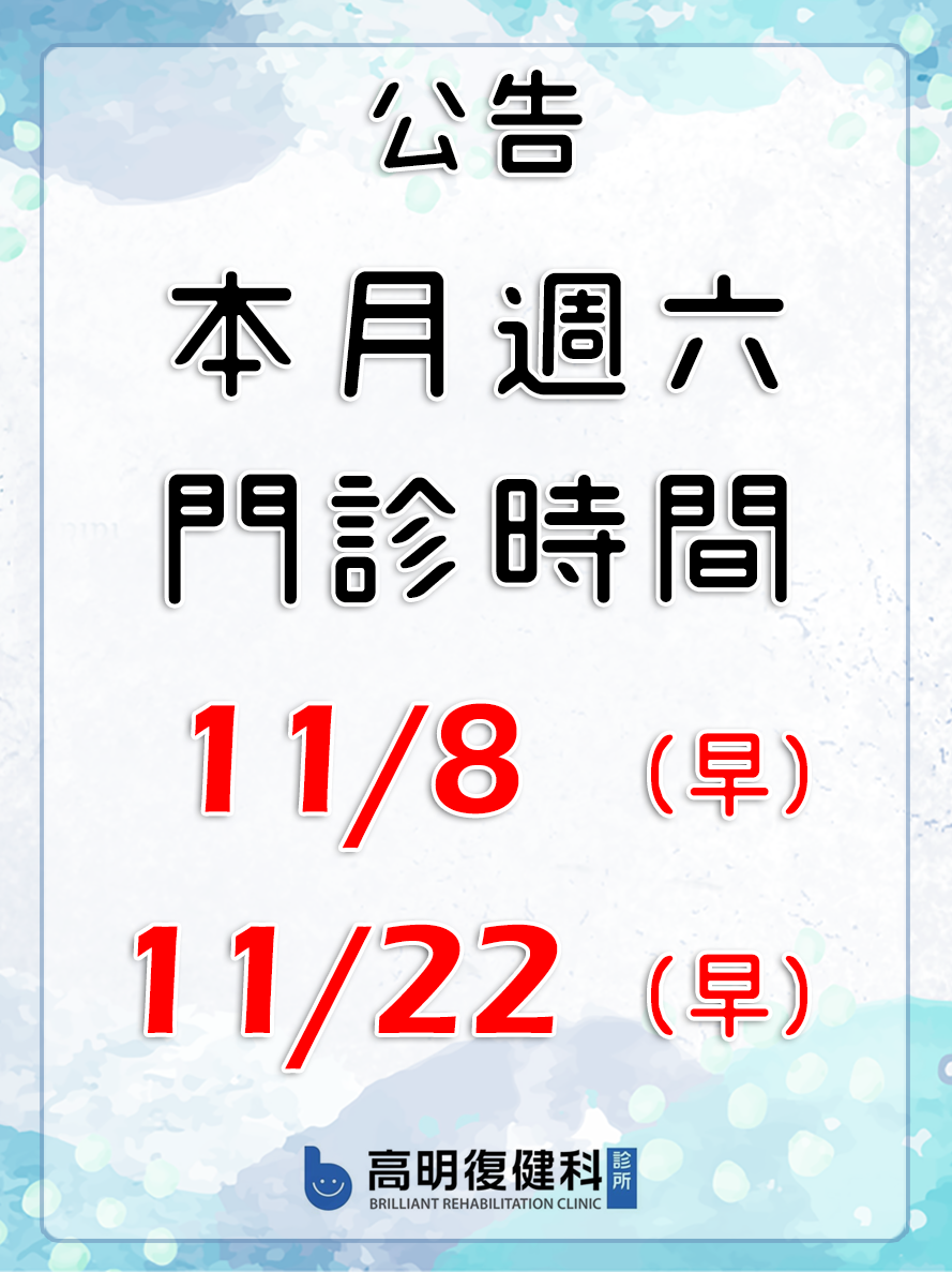 114年11月份週六門診時間如上,歡迎有需要的民眾可以參考。