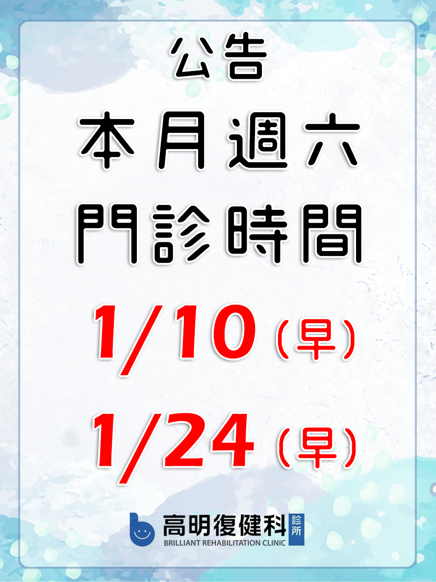 115年1月份週六門診時間如下,歡迎有需要的民眾可以參考。