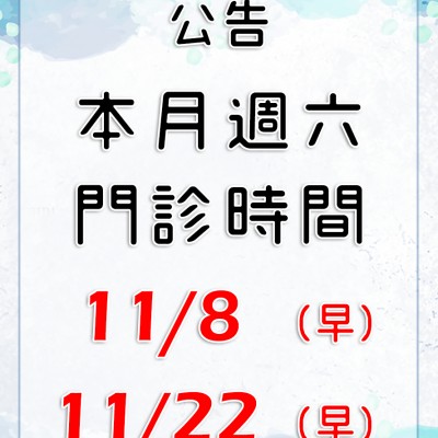 114年11月份週六門診時間如上,歡迎有需要的民眾可以參考。